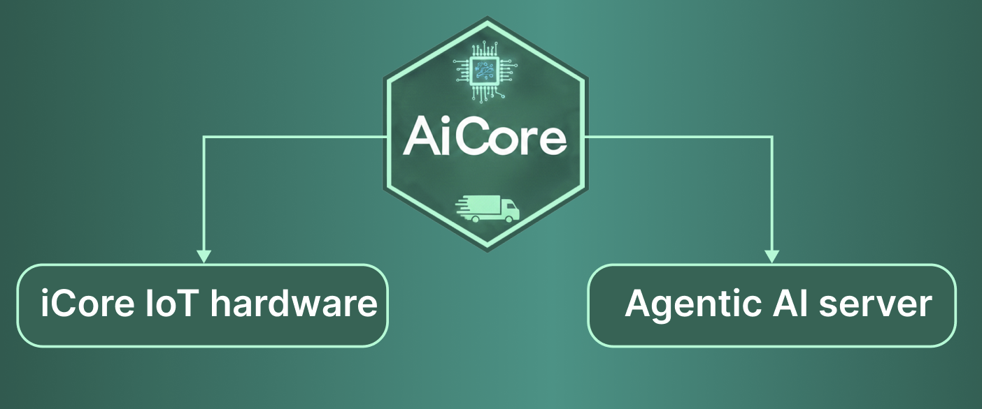 The digital twin AiCore System is driven by two core components: the iCore IoT hardware and the AI software in the Agentic AI server.