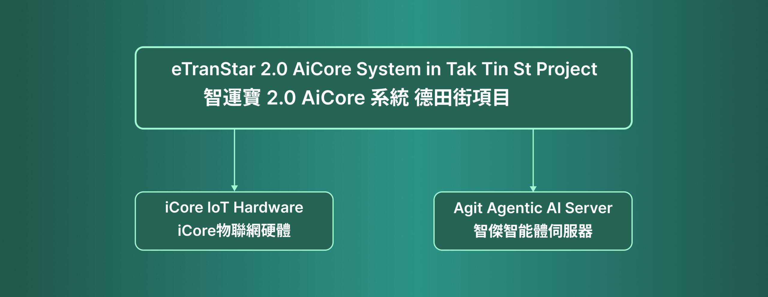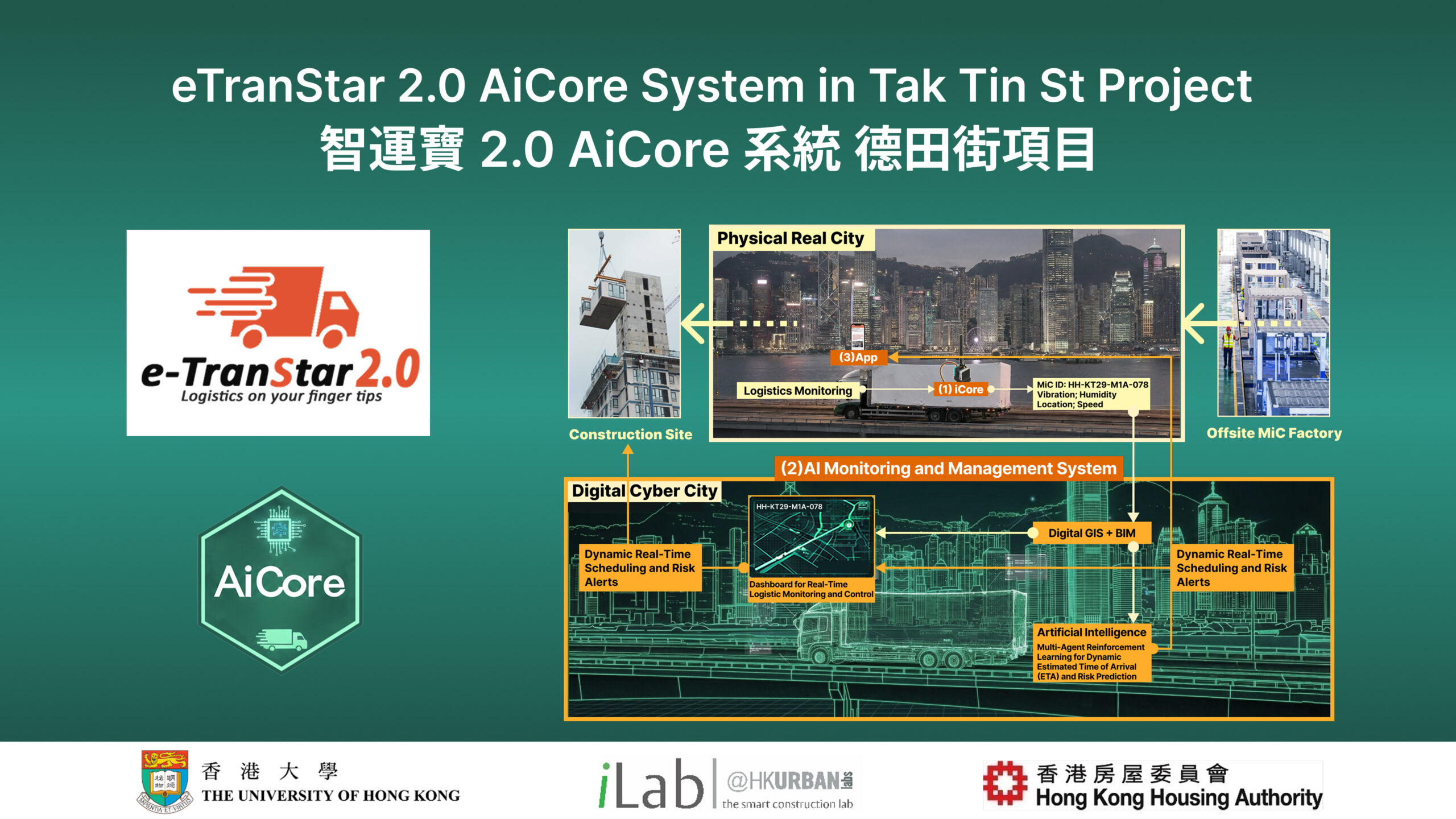 eTranStar 2.0 AiCore System integrates our iCore, an IoT with sensors, with our Agit Agentic AI server to form a digital twin for real-time scheduling and transport monitoring of prefabricated building modules for Just-In-Time, orderly, and safe delivery from offsite factories to construction sites.